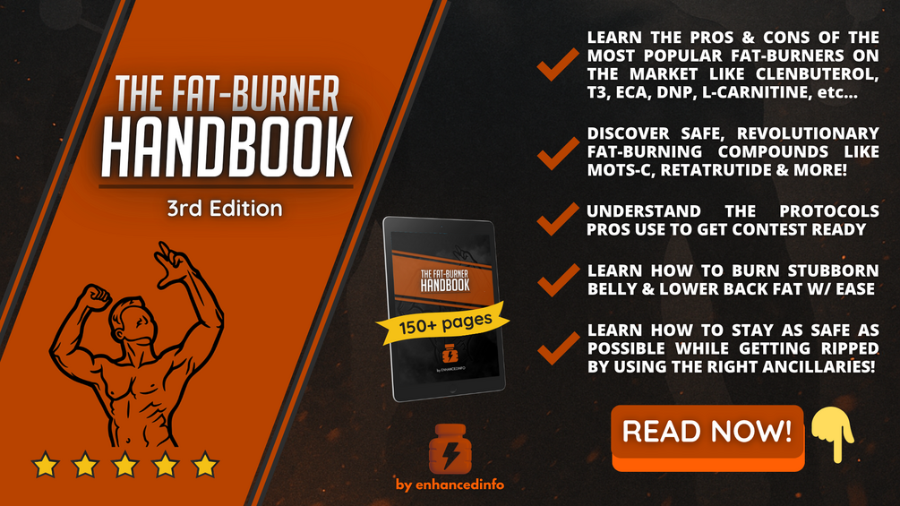 THE FAT-BURNER HANDBOOK is an all-in-one guide that explains how every popular and revolutionary fat-burner used in bodybuilding works, and teaches you how to use them in a way that will allow you to get the most out of them without endangering your health or making you hate your life.